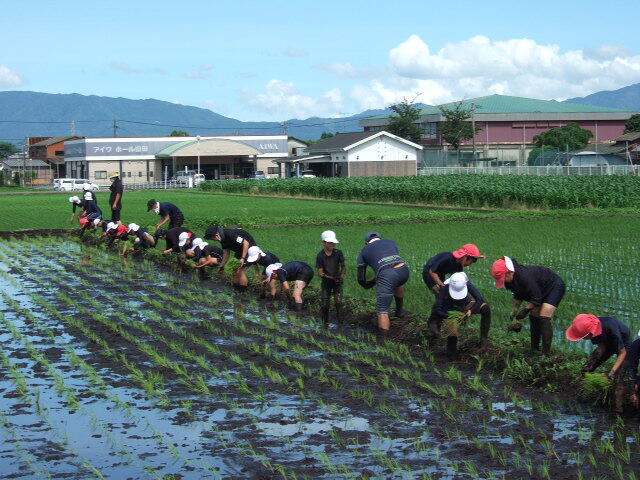 6月29日(水)に山田JA青年部や地区有志の方々の協力を得ながら、5年生が田植えの体験学習を行いました。昔ながらの田植えを体験して、米作りの大変さや食への関心を高めることができました。田植え体験のためにいろいろと準備をしていただいた方々に感謝いたします。