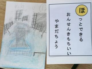 昨日は4年生のカルタ作りについて載せましたが、今回は3年生が総合的な学習の時間で取り組んでいる山田町にちなんだ創作カルタです。学習した山田町の自然や施設、偉人などを題材に読み札の言葉を考え、それに合った取り札をデザインしていました。できあがったカルタで楽しく遊べそうですね。