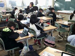 4年生が国語の学習で創作カルタを作っています。お題は「冬の楽しみ」、午年にかけたものや雪、こたつ、お年玉、年越しそば、クリスマス、節分等々、冬休みの出来事やこれからの行事を題材にしていました。読み札の言葉を考え、それに合うデザインの取り札を作成していました。中にはタブレットでデザインの参考となる画像を探し、細かいところまで描いている札もありました。子どもらしい発想でほっこりするカルタでした。