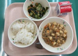 ごはん 麻婆豆腐 きゅうりとささみのナムル 牛乳