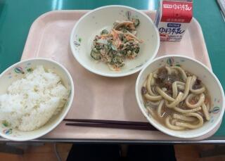 減量ごはん 肉うどん れんこんとツナのサラダ 牛乳