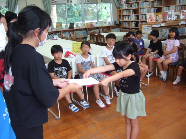 低・中・高学年別に1学期の多読賞ベスト5の表彰式を図書室で行いました。総勢16名のベストリーダーに図書委員会のメンバーが賞状を渡しました。みんなニコニコ顔で、2学期もベストリーダーに選ばれるようにがんばろうと目標を新たにしていました。