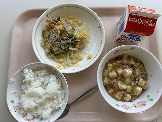 ごはん 麻婆豆腐 春雨サラダ 牛乳