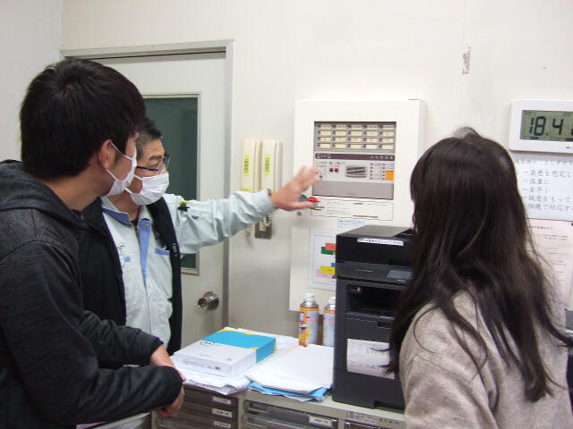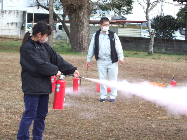 都城市では、今年に入ってからすでに10数件の火災が発生しているとのことです。本日は、命を守るために火災時の避難訓練を行いました。消防署への通報訓練や消化器を使った消火訓練、そして火災受信機の仕組みについても職員向けにお話していただきました。命を落とすこともある火災についての意識付けができる活動になりました。ご協力いただきましたシマダ防災設備の方々ありがとうございました。