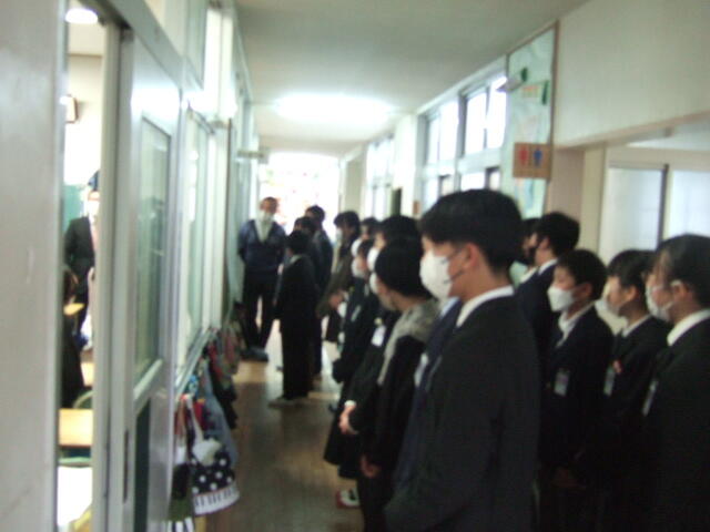 卒業式当日の朝の時間に、卒業生は、式に参加しない1年生から3年生にお礼のあいさつのために、各学年を回りました。6年生のあいさつの後、各学年からも「ありがとうございました。」「中学校でもがんばってください。」のかけ声で、卒業を祝うことができました。
