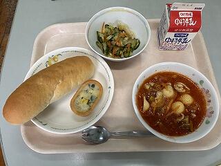 コッペパン フレンズグラタン グリーンサラダ ミネストローネスープ 牛乳