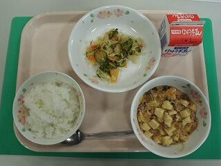 ごはん 麻婆豆腐 キュウリとキャベツの中華和え 牛乳