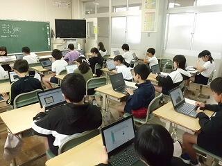 6年生の算数の時間です。この日は対称図形について学習していました。授業の後半でしたが、一人で作図したりタブレットで確認している児童、友達と確認したり、教え合ったりしながらながら活動する児童など、教室全体が活発に学習している雰囲気が伝わってきました。
