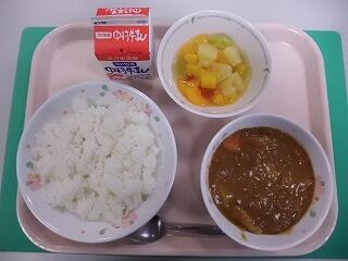 麦ご飯 ポークカレー フルーツポンチ 牛乳