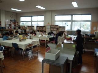 この日はあいにくの雨、昼休みになると図書室に大勢の児童が集まって読書をしていました。また、2年生教室では、友達と色々な道具を使って仲良く遊ぶ姿が見られました。