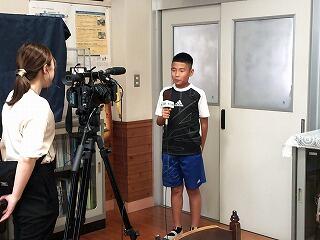 平和学習についてケーブルテレビが取材に来ました。8月6日の追悼式の様子や当日に至るまでの準備や取組みの様子も取材し、番組を作るとのことです。今日は、昼の読み聞かせや6年生2名のインタビューの様子を撮影していました。二人ともハキハキとした口調でコメントをしていました。