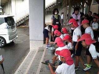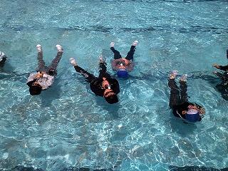 プール掃除の前日、全学年、学年部ごとに着衣泳の指導を行いました。服を着ての水中での動きにくさの体験や力を抜いて水に浮く体験、ペットボトルを抱えて浮く活動を行いました。また、最後は服を脱ぎ水着で泳ぐことで、あらためて着衣状態で泳ぐことの困難さと水難事故の怖さを再認識できたようです。これからの水辺での命を守る行動につなげてほしいものです。