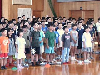 8月6日に開催予定の戦没者・空襲犠牲者合同追悼式での発表に向けて全校合唱『HEIWAの鐘』の録画、録音をしました。この1か月、朝の歌で練習した成果もあって、難しい歌詞の歌ですが全校で心を一つにして歌い上げることができました。式典当日は代表参加の6年生の発表と併せて披露されますが、子どもたちの平和への思いがMJホールの会場に響き渡ることが楽しみです。