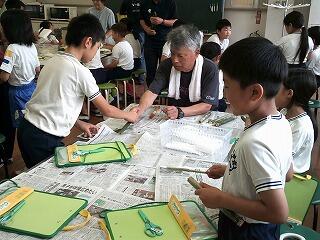 3年生が竹を使った昔ながらの水鉄砲作りに挑戦しました。竹の準備は地域のきりっ子隊がしてくださり、児童は水が漏れないようにスポンジや布をまく作業からスタートしました。地域の方8名のサポートを受けて、一人一つずつmy水鉄砲を作り上げました。作成後は、さっそく、外で水を飛ばし、水が飛び出す度に歓声が上がりました。きっと今年の夏を楽しむアイテムになるのでしょうね。
