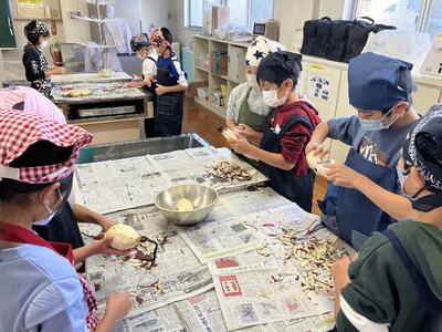 子ども達は、さつまいもの皮を一生懸命にむいていました。たくさんのねったぼができたので、さつまいも作りを一緒にした1年生、2年生にもねったぼをおすそわけしました。