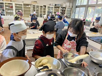支援学級担任の親御さんを講師に沖縄料理の親子調理会がありました。作ったのはサーターアンダギーやジューシー、イナムドゥチ、ヒラヤーチーです。子どもたちは食材を丁寧に切り分けて真剣に作っていました。できあがった料理はとてもおいしかったようで、また作りたいと子どもたちから感想が聞かれました。