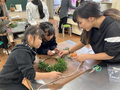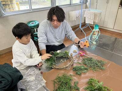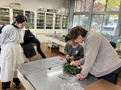 12月7日に第4回の家庭教育学級を行いました。活動内容は、親子でクリスマスリース作りです。講師に FLORA Tearful eyeさんをお招きし、丁寧に指導をしていただきながら親子で楽しくクリスマスリースづくりを行いました。