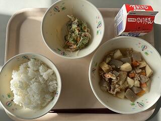 ごはん 肉豆腐 きゅうりとわかめの酢の物 1食ひじきのり 牛乳