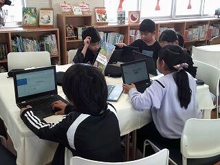 図書室で図書委員会の児童がタブレットでのポスター制作やイベントの準備を進めています。本年度は全校で年間貸出し冊数10000冊という目標を立て、学年部毎にも目標冊数を設定して、それを呼びかけるようです。委員会児童の取組みで読書への意欲関心が高まり、一人でも多く読書に親しむ児童が増えるといいですね。