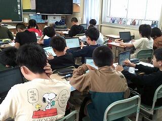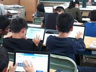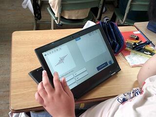 6年生の算数は対象な図形の学習です。この日は、授業後半を参観しましたが、この時間の学習内容の練習問題を解き、終わった児童から習熟の問題をタブレットを使用して進めていました。正誤がすぐに表示されるので間違ったら繰り返して挑戦したり、友達と確認する姿が見られました。