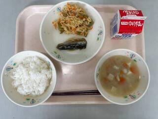 ごはん いわしの梅煮 千切り大根の炒め煮 じゃがいものみそ汁 牛乳