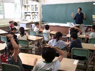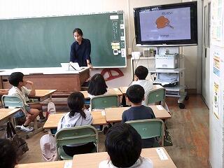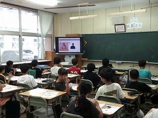 5年生が外国語科で世界の国々の手話やジェスチャーの違いなどを学習していました。身近なあいさつや感情を表す表現などなじみのあるものもありましたが、手話に関心のある児童は発音や映像に合わせてどんどん手を動かし、取り入れている様子がうかがえました。後半はゲームをとおして復習をしていました。