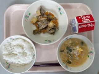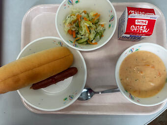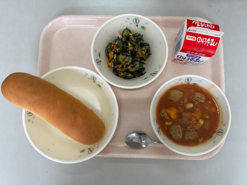減量黒糖パン ジャージャー麵 もやしとささみのごまドレッシング和え 牛乳