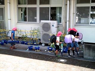 学校では生活科や理科、総合的な学習の時間の活動のため、様々な植物が育てられています。一人一鉢から学級園、観察園、畑などで夏の日射しを受けて、ぐんぐん茎を伸ばし、葉を広げています。芽が出たり、葉っぱが増える、花が咲く度に喜んでいたのも、この前のような気がします。この日、2年生は帰る前に一人一鉢の様子を見て、赤く実ったミニトマトを手に取って帰っていました。