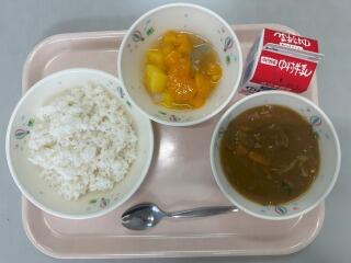 麦ごはん、夏野菜カレー、フルーツポンチ、牛乳