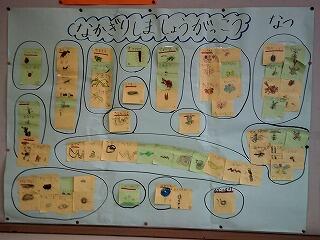 1年生が生活科の学習で「秋の生き物」の学習の計画を立てていました。教室の後ろには夏の観察で作成した生き物が掲示してあります。さて、秋の生き物は何か変化があるのでしょうか?これからの屋外での学習が楽しみですね。また、記録(写真や動画)のためにタブレットも用います。どんな生き物の姿が記録できるか楽しみですね。
