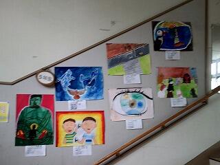 先日の参観日に併せ、多目的室で夏休みの校内作品展を開催しました。習字や絵、工作、自由研究、発明工夫など力作揃いの作品が並びました。夏休みの子どもたちのがんばりが感じられます。また、階段の学年掲示板にも夏休みの思い出や図工の作品が掲示してあり、一足早い「芸術の秋」を迎えたようでした。