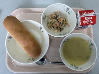 コッペパン 肉じゃがコロッケ ブロッコリーサラダ ミネストローネスープ 牛乳