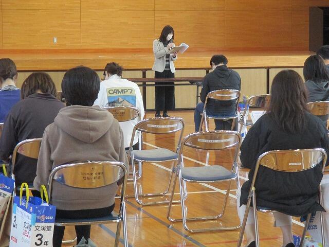 3月1日に全校集会を実施しました。これは毎月1回実施しているものなのですが、これまではほとんどがオンラインで行っておりました。
