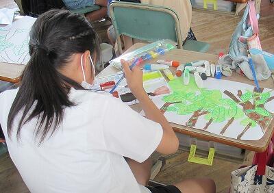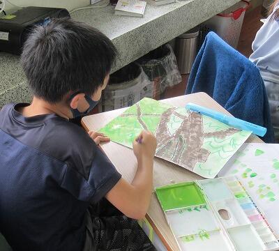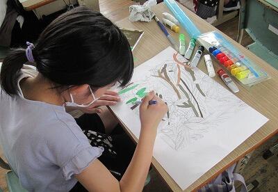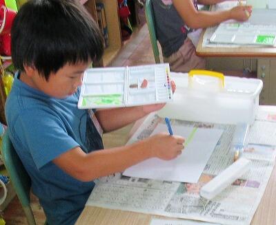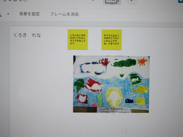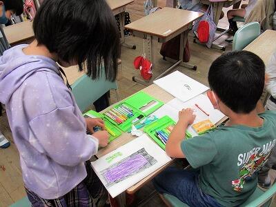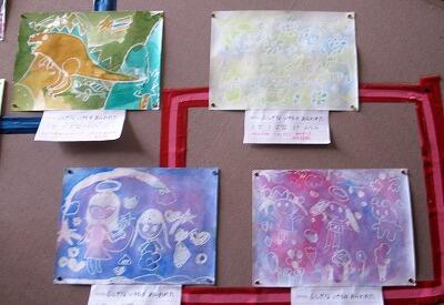 最後に、先生から「みなさんの作品に、先生が魔法をかけておきます。休みが終わって学校に来る日を楽しみにしておいてください!」子供たちから「えー!何だろうな?楽しみ!!」の声。放課後、先生が魔法をかけた作品をこっそり見せてくれました。子供たちはきっと大喜びすることでしょう。そして、これからたくさんの色を使って素敵な作品を描いていくことでしょう。
