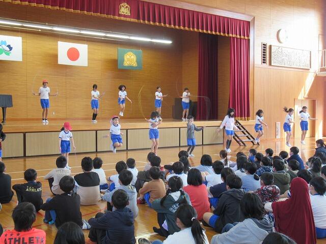 コロナ禍でも、なわとび運動はしていましたが、「なわとび集会」は3年振りの開催です。