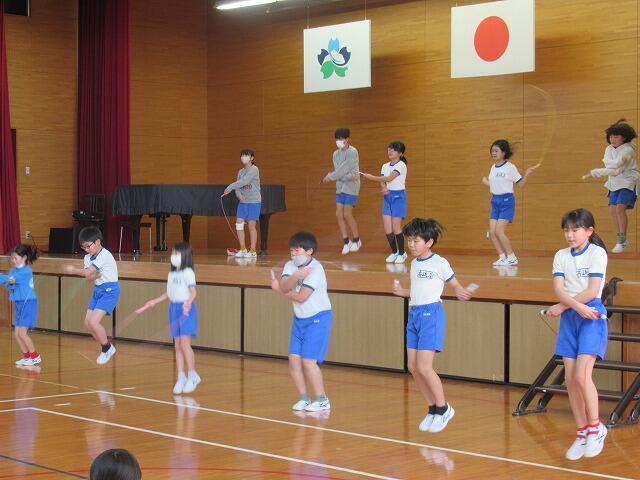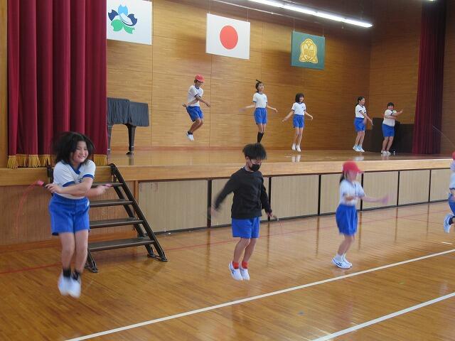 長縄もできるようになりました。なわとび運動を通して心も体も元気もりもりです。