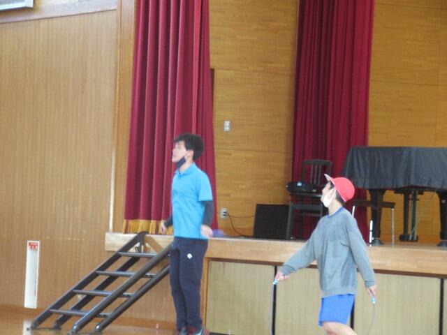 2時間目に体育館で1年生となわとびをしました。疲れ知らずの1年生との運動は、体力向上には打って付けです。写真撮影の時間させ与えてもらえないぐらい鍛えられました。次回は、カメラを持ちながらなわとびに挑戦します。