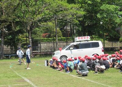 命に関わる大切な訓練のため、みんな真剣に取り組む姿が見られました。北消防署の隊員の方から、最後に講評がありました。高崎の子供たちは、みんな静かに落ち着いて行動できていたと誉めていただきました。