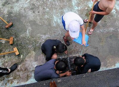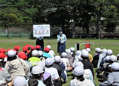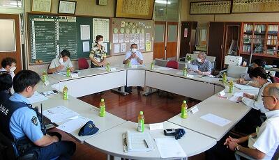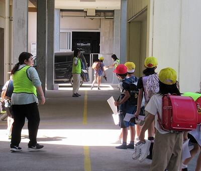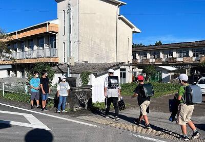 ② PTA役員や民生児童委員の皆様、学校職員と合同で校区内点検を行いました。3班に分かれて打合せをした後に、用水路など校区内の危険箇所の確認や看板設置、「子ども110番の家」の確認に出かけました。昨年度まではコロナ禍で学校のみで行っていましたが、より多くの人数で点検・情報共有することができました。暑い中、ご協力ありがとうございました。