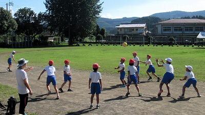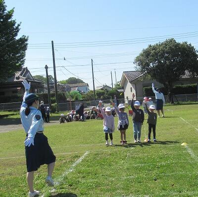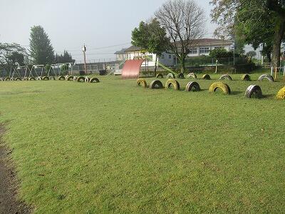 素晴らしい天気です。子供たちが運動場に繰り出しています。業間活動開始の様子です。さて何をするかと言いますと・・・