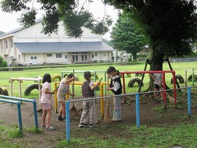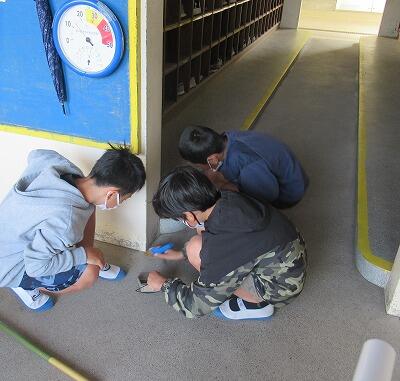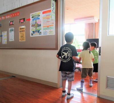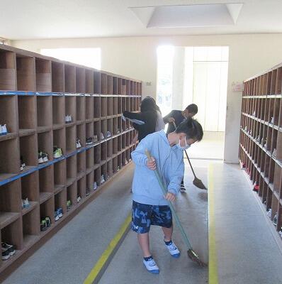子供だけではなく事務室の先生も、朝、玄関や渡り廊下をきれいにしてくださっています。