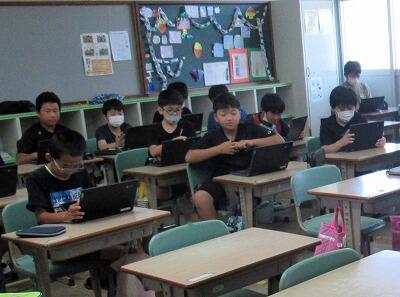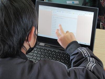 来週の全国学力調査に向けて、6年生がオンラインで質問形式の調査に答えていました。今週は「学習の振り返り&定着週間」になっていて、学びタイムや家庭学習などで復習をしています。勉強もがんばれ!6年生。