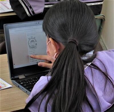 お隣のクラスでは、社会の時間で「源頼朝」の学習でした。頼朝の肖像画を見て感じたことを、ジャムボードで共有していました。集中して取り組んでいます。みんなタブレットを使いこなして学習に取り組んでいました。