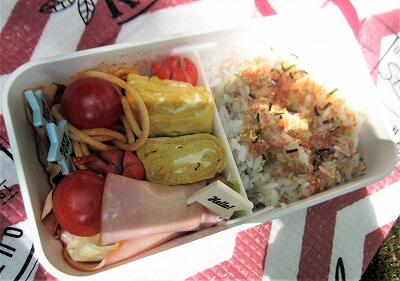 お弁当もみんなで食べました。でも距離はしっかりとっています。
