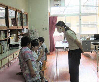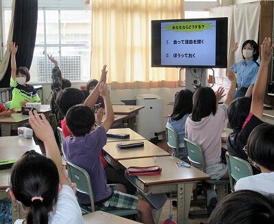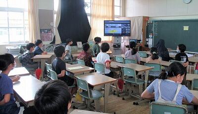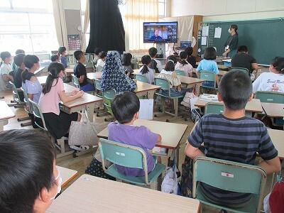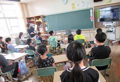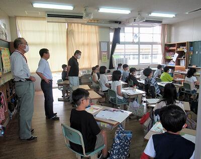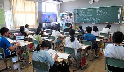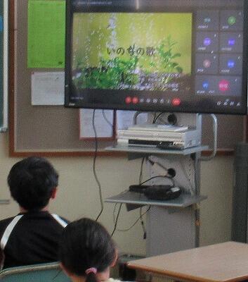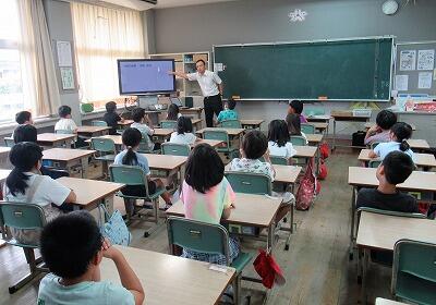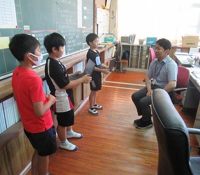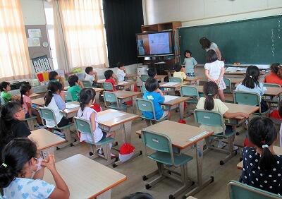 全校朝会は校長室と各教室を結んでオンラインで行いました。校長先生からは平和や戦争についてのお話、生徒指導担当の先生からは、改めて水や車の事故から命を守ることや夏休みの過ごし方についてお話がありました。残りの夏休みも健康や安全に十分気を付けながら、楽しい夏休みを過ごしてほしいと願っています。