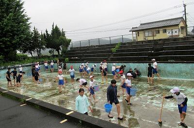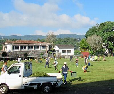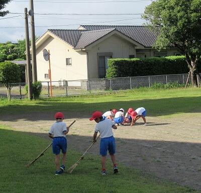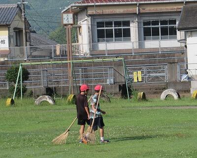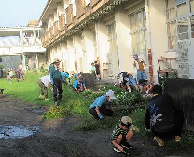 8月20日(日)に、PTA親子愛校作業が行われました。たくさんの保護者の皆様と子供たちの参加があり、草刈りや除草、溝そうじ等の清掃作業をしていただきました。朝早くから、ご協力いただき本当にありがとうございました。学校が大変きれいになりました。子供たちも、きれいに整備された運動場で思い切り運動会の練習に取り組むことができます。
