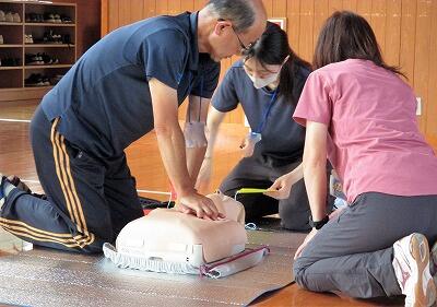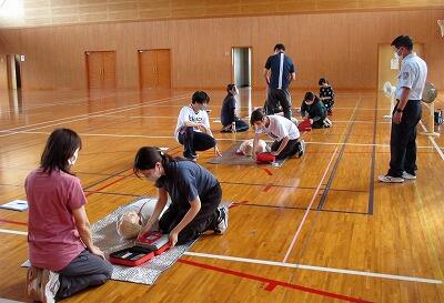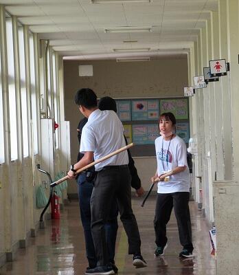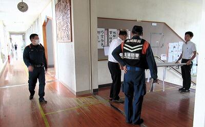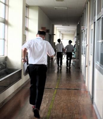 今回は、けが人が出たという想定で突然の対応の訓練も行いました。けが人が出たクラスも事前に知らせていません。放送後、すぐに担架や救急セットをもって応援の先生方が駆けつけました。