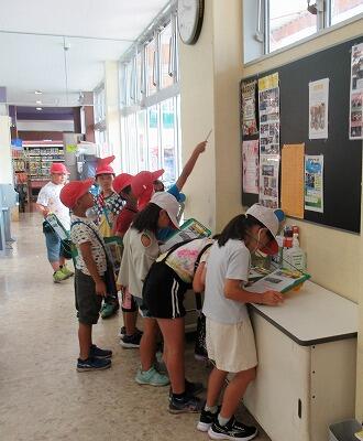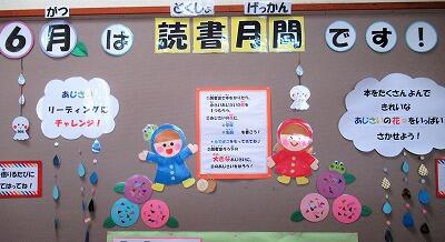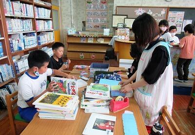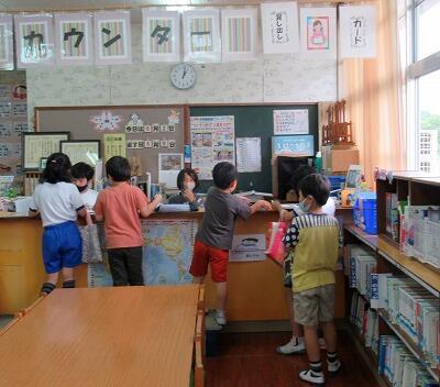 今日は朝から雨でした。昼休み時間、学校図書館に行ってみると、たくさんの子どもたちが本を読みに来ていました。貸し出しカウンターには、行列ができていました。本好きな子が増えるようにと掲示や展示の工夫をしてきた図書館サポーターの先生も、にっこり笑顔でした。