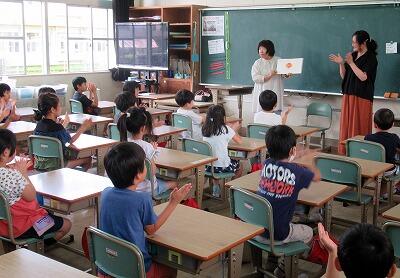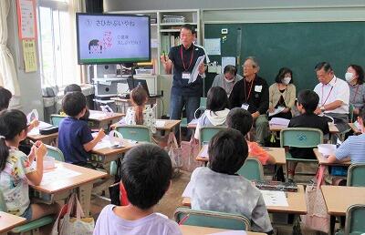 「大きなかぶ」「おむずびころりん」「桃太郎」などのお話の一部を方言で発表しました。最初の頃よりも流ちょうに方言を話しています。途中で笑いもおきました。