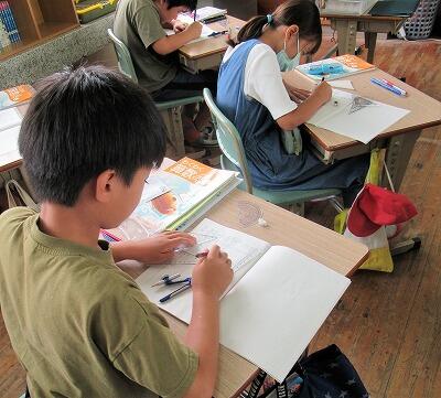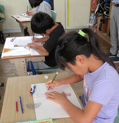 だんだん慣れてきて、みんな一心に線をひいています。シュミレーションの成果がばっちり。